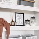 These lovely labels fit perfectly onto these Kmart Jars to make your laundry look gorgeous. They can be added to other jars or containers that you have. These decals are waterproof but we strongly recommend hand washing these items.