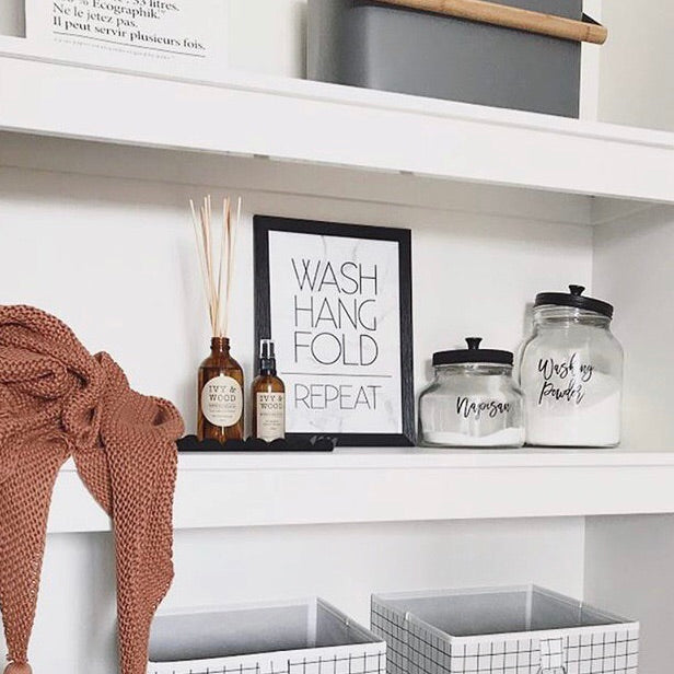 Throw out your boxes and treat yourself to some of these gorgeous labels and make a display of the essentials in your laundry space.
