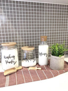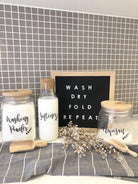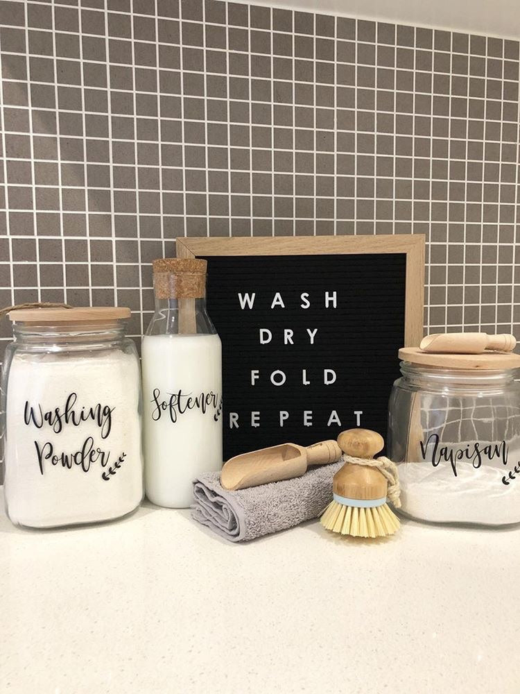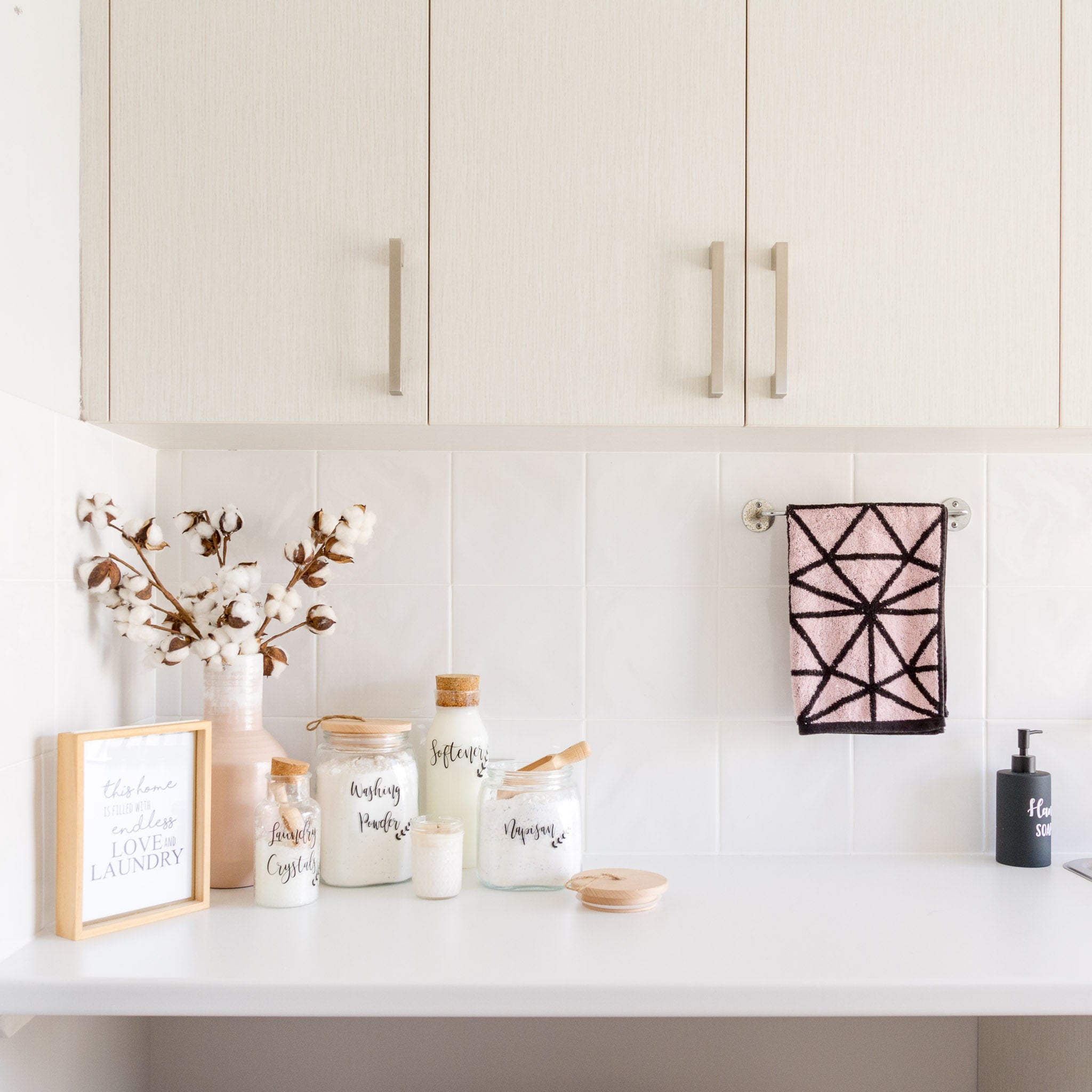 Transform your boring old laundry cabinet into beautiful, organised containers with our custom vinyl laundry and cleaning labels. These labels provide helpful information that can save you time and elevate your laundry, linen, and bathroom organisation. Designed to fit perfectly on Kmart glass storage jars, these labels will help you create a stylish and uniform look. They are ideal for labelling items like Napisan, washing powder, softener, and more. Say goodbye to clutter and hello to a beautifully organised laundry room with our orchid laundry labels!