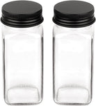 Square Glass Spice Jars | 120ml and 340ml | Acacia Wood, Bamboo, Black and Silver