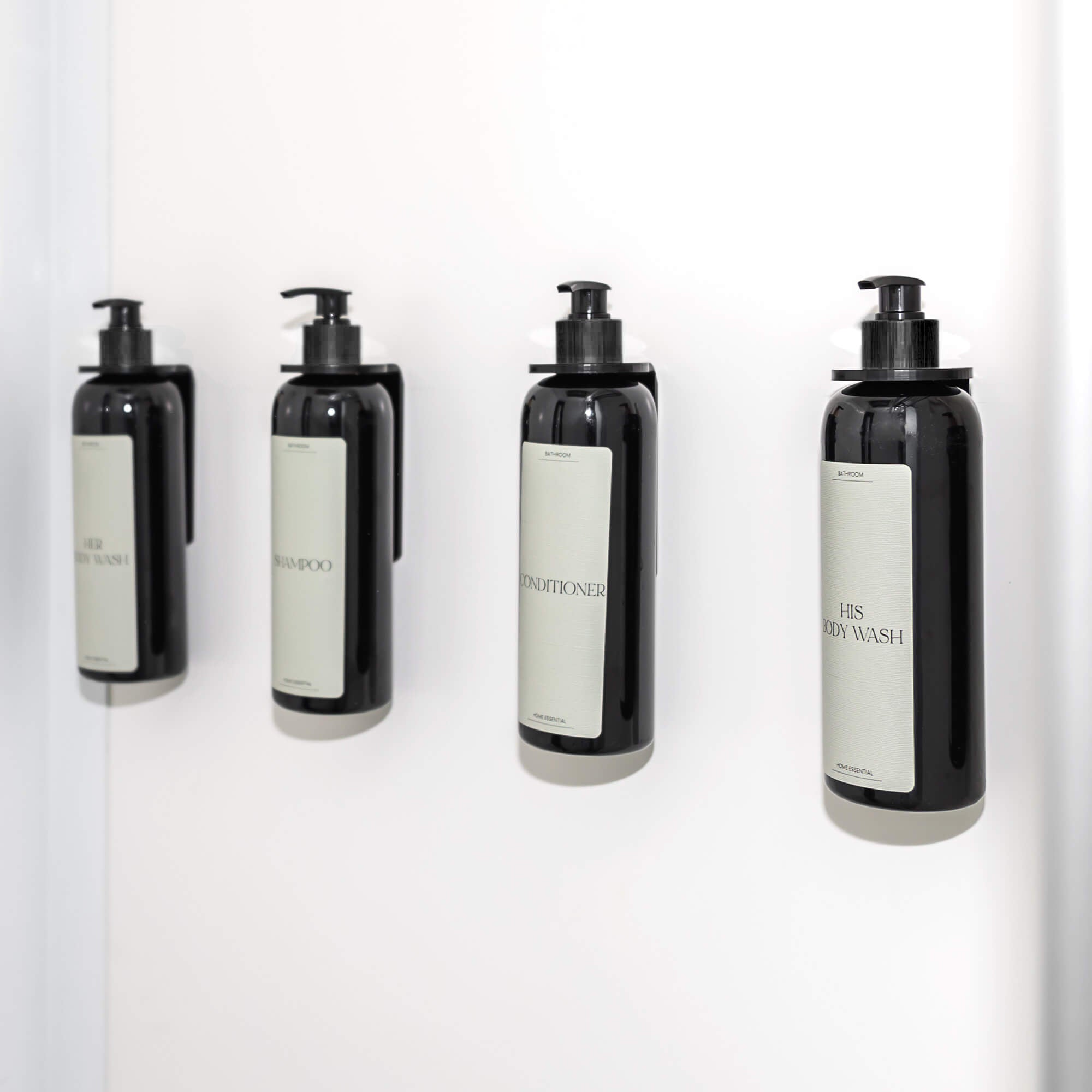 Introducing the Acrylic Wall-Mounted Pump Bottle Holder, a clever solution for your bathroom, powder room, or caravan. These wall-mounted dispenser holders are designed to provide handwashing convenience while adding elegance to your space. Available in single and double configurations and black, and white options, they are the perfect fit for our 500ml plastic bottle linked here.