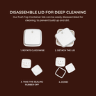 Tidy Lid Storage: Each container includes an internal rod to keep the lid neatly suspended while open.