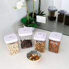 These push top containers are air tight. The push lock lid mechanism means when the lock is closed, the silicone seal applies uniform pressure. When opened, the seal releases and the top is easily removed, preserving the freshness of all your dry food staples.
