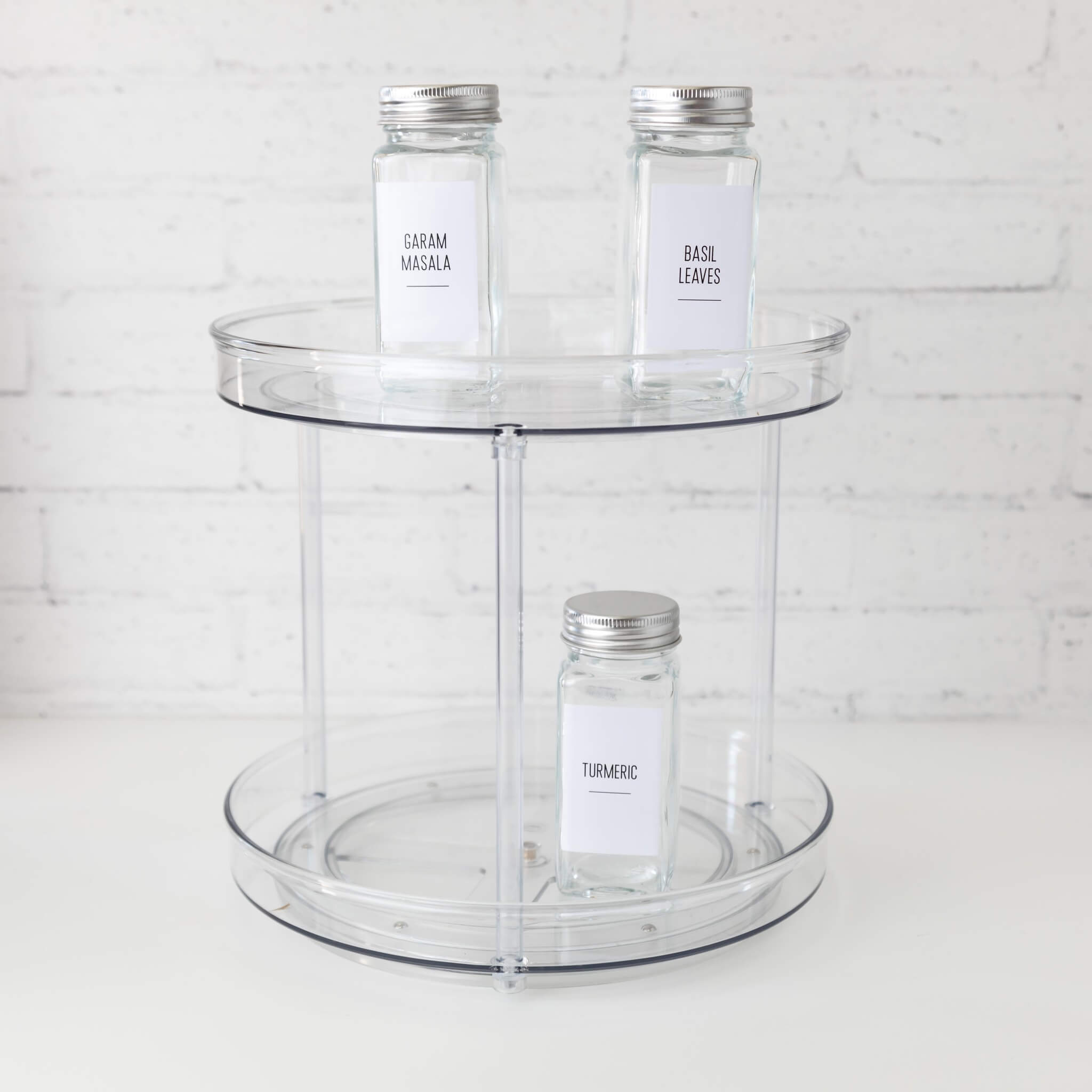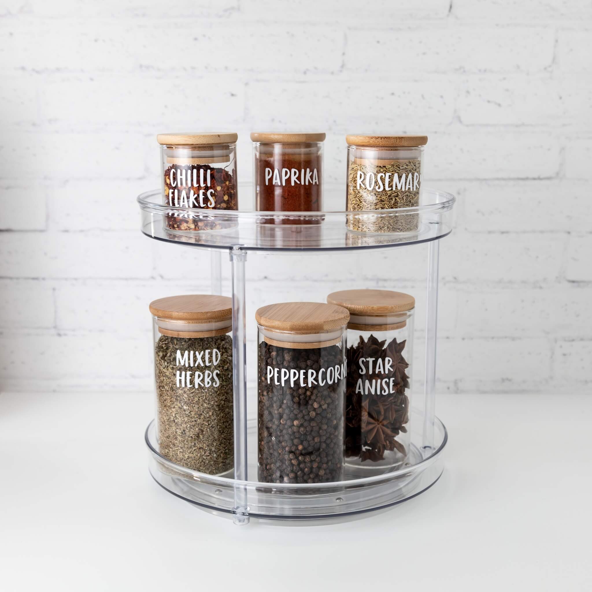 Use Our Clearly Organised 2 Tier Lazy Susan to make the most of shelf space in a pantry or cabinet. With a quick spin of the turntable, you'll be able to grab the exact herb and spice jar you need. This two tier Lazy Susan is the perfect way to keep spices, condiments, and other kitchen items neat and tidy. Organise your spices with our herb and spice jars here