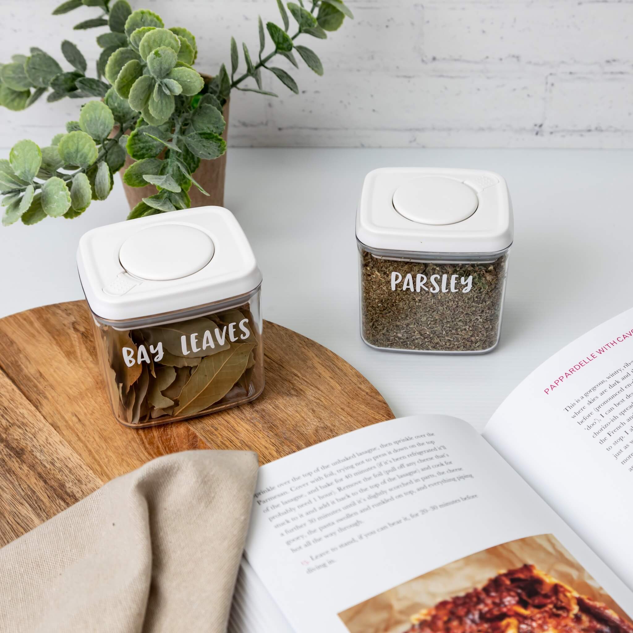 Each container features our signature push-top airtight seal to lock in flavour and freshness while keeping your pantry beautifully organised. The stackable, space-saving design fits neatly into spice racks, drawers, or narrow pantry shelves, helping you make the most of every inch.