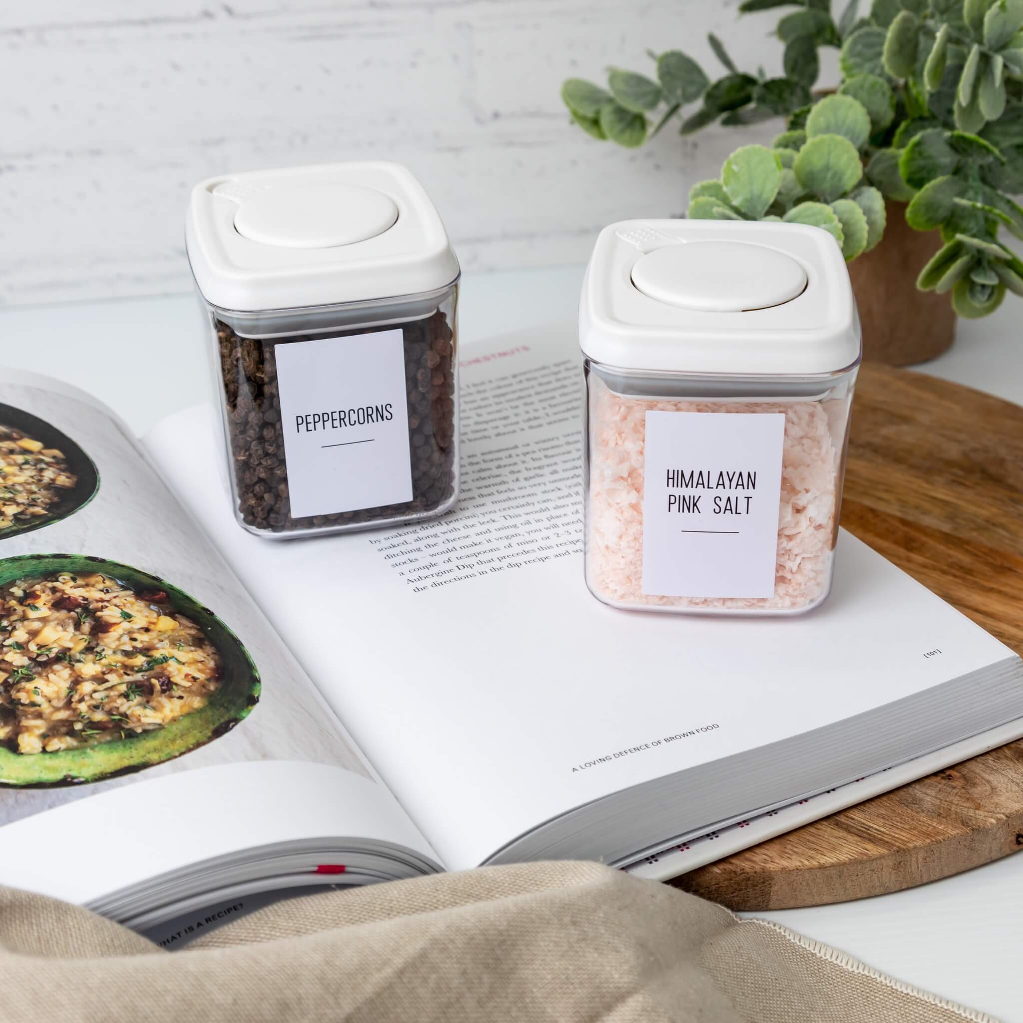 Pair your spice storage containers with our Modern Minimalist Pantry & Spice Labels for a clean, cohesive look across your kitchen.
