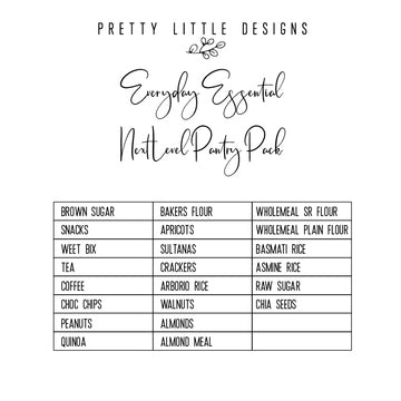Next Level Pantry Pack - 25 Labels - Almond Meal, Almonds, Apricots, Arborio Rice, Bakers Flour, Basmati Rice, Brown Sugar, Chia Seeds, Choc Chips, Coffee, Crackers, Jasmine Rice, Peanuts, Quinoa, Raw Sugar, Snacks, Sultanas, Tea, Walnuts, Weet Bix, Wholemeal Plain Flour, Wholemeal SR Flour