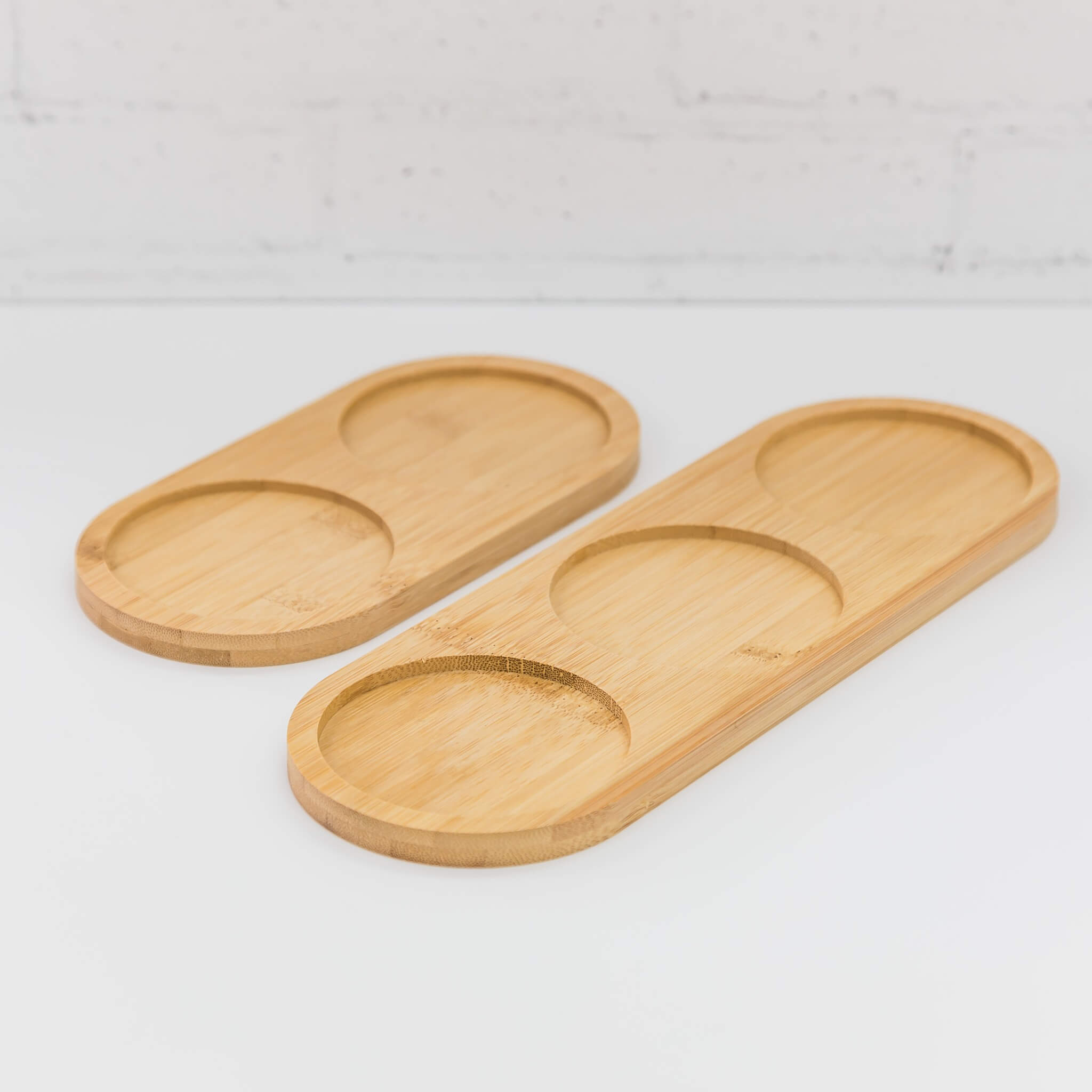 - 3 Hole Bamboo Tray - 28.5cm x 9.5cm (Inner Hole - 6.8cm)