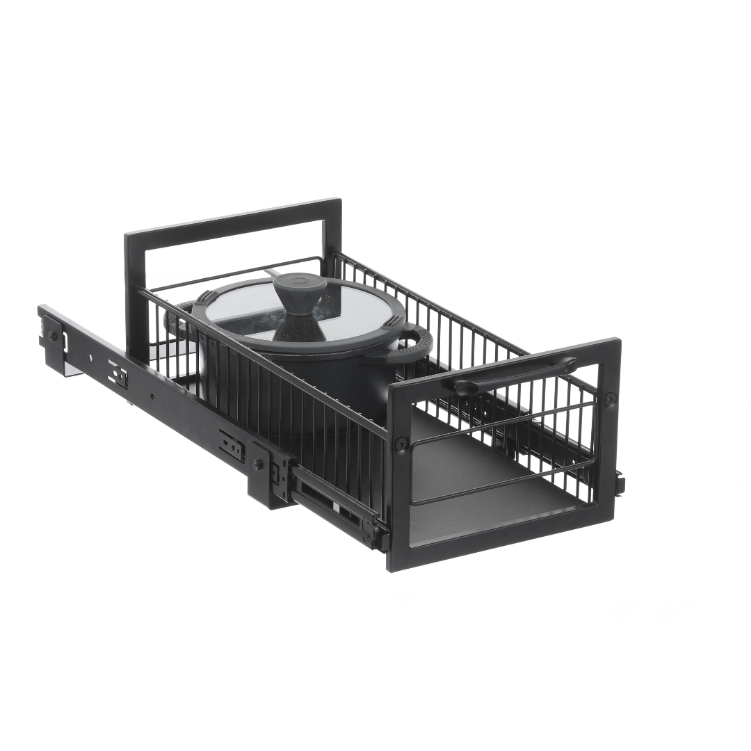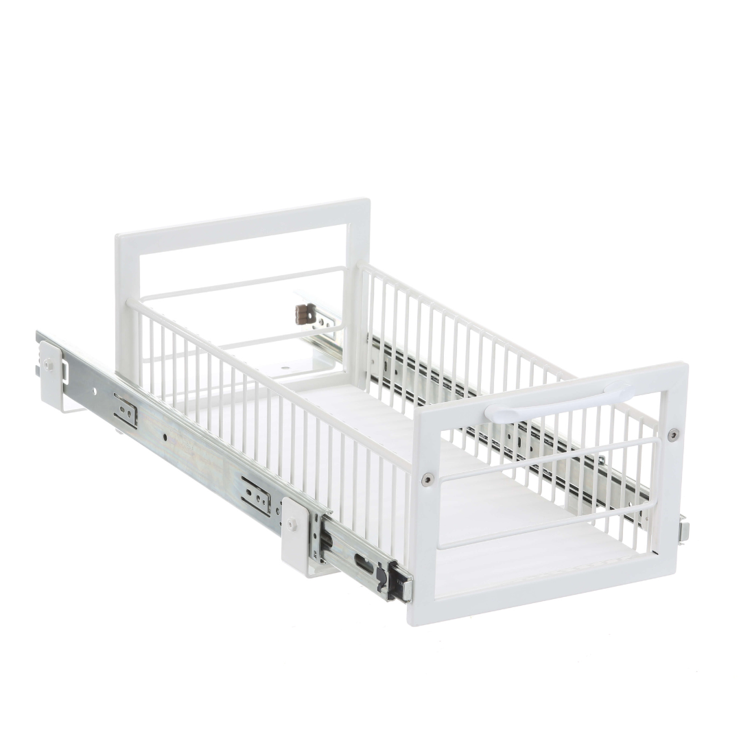 Install this base-mounted pull out drawer on your existing cupboard shelves to create an instant pull-out storage solution. Bottom mount baskets can be added to just about any cabinet for easy access and perfect visibility. They are easy to install and made from powder-coated steel and have a load capacity of 25kg this drawer is perfect for your pantry, kitchen cupboard, bathroom or home office!